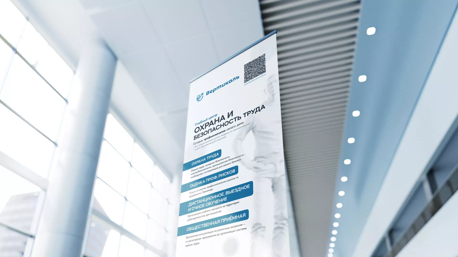 После разработки фирменного стиля и создания сайта, мы приступили к разработке дизайн-макета ролл-ап стенда в Наволоках для учебного центра «Вертикаль».