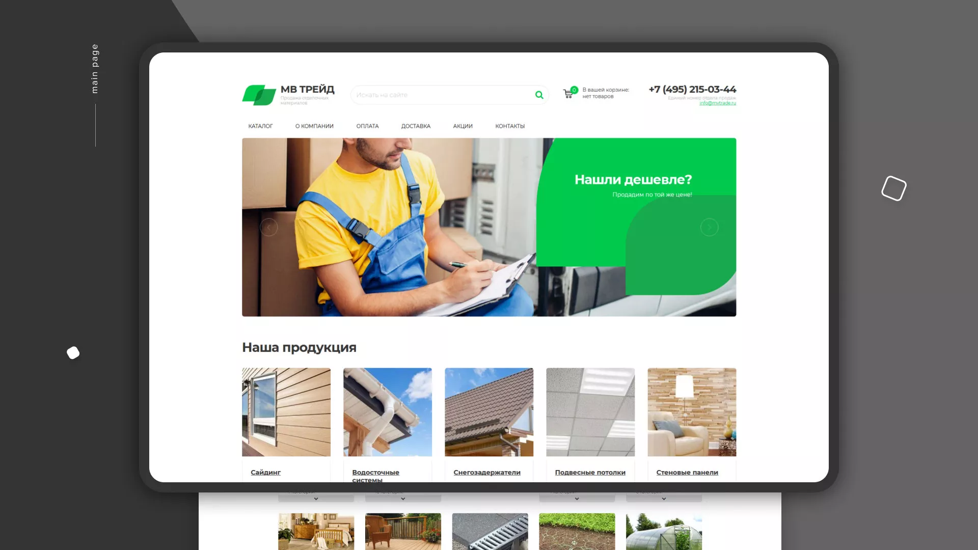 Компания «МВ Трейд» осуществляет продажу сайдинга и отделочных материалов через интернет со своих складов в Наволоках. За 17 лет компания зарекомендовала себя надежным поставщиком. Товары реализуются как оптом, так и в розницу.